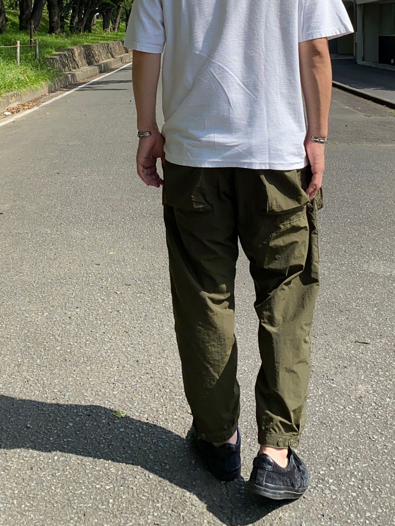 太過ぎないゆったりとしたシルエットで、裾はボタンで調整が可能な仕様になっています。