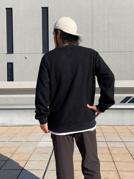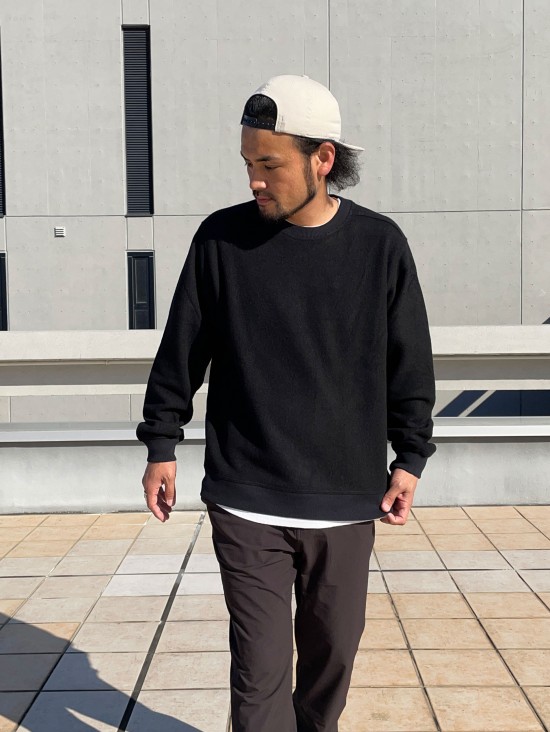 クルーネックに袖・裾ともにリブ仕様のシンプルな作りで合わせ易く、高機能でありながらスウェットのような着回しの効く使い易さが魅力のセーター。