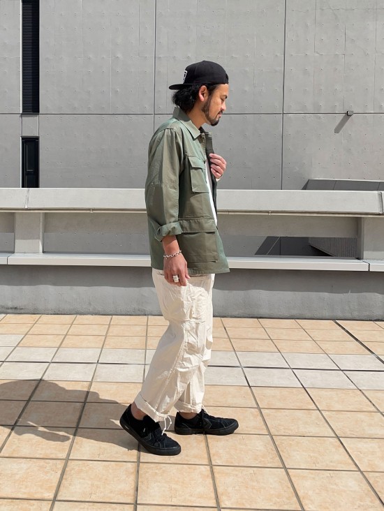 この夏のリミテッドとしてリリースとなったオリーブの玉虫素材を使用したBDUジャケット、カーゴパンツ、カーゴショーツ、そして通常のラインナップの中からセレクトしたカーゴショーツ2色。どれもこの夏のスタイルに絶対に取り入れて頂きたい勢いのアイテムで、暑くなってくるこれからをイメージすると本当にマストなアイテムばかりとなっています。