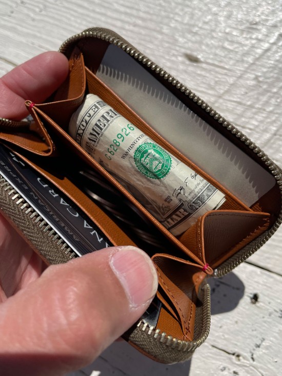 玉虫なので、右と左、場合によってはポケットとフラップでも色味が異なるように見えます。