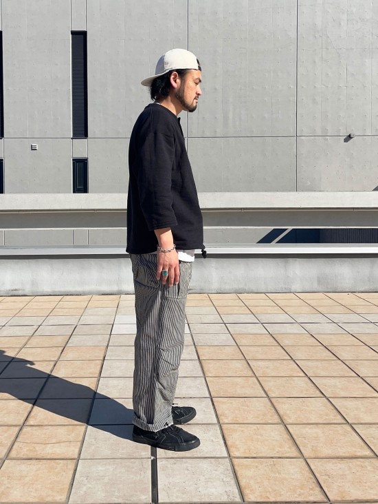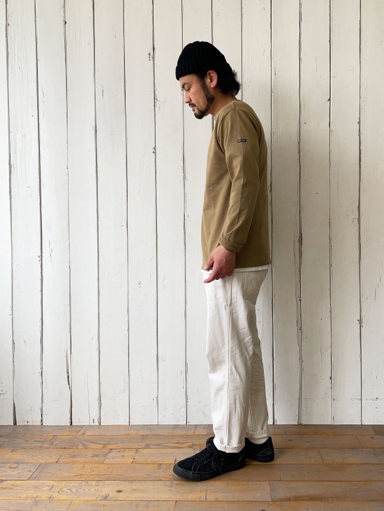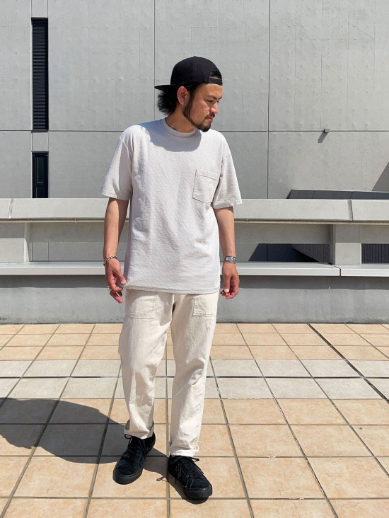 特にボルダーパンツは自分も数年前に買って気に入っていたのですが、生地が現行のものとは異なり、シルエットも細過ぎる、、、、なんかなぁと。だったら新調しよう!!ってなって、この春2代目をゲットしました!改めて穿いてみると、、、、やっぱり良いです!この何か物足りない感じが、逆に合わせてる他のアイテムを引き立ててくれるような感じがします。