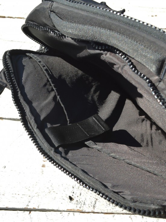 フロントにジッパーポケット、メインコンパートメントの中には小物収納用の小型ポケットを1つ装備。