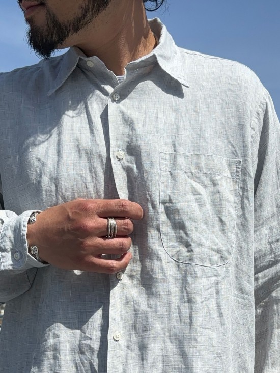 腕まくりやボタンを開けて着る事で気温の調整もし易く、見た目的にも今にフィットします。使い勝手だけじゃなく季節感を出す意味でも良い感じに調和がとれ、スウェットやパーカー、Tシャツといったオンリーカットソーの流れにも変化を与えてくれるのでかなりオススメ!です。