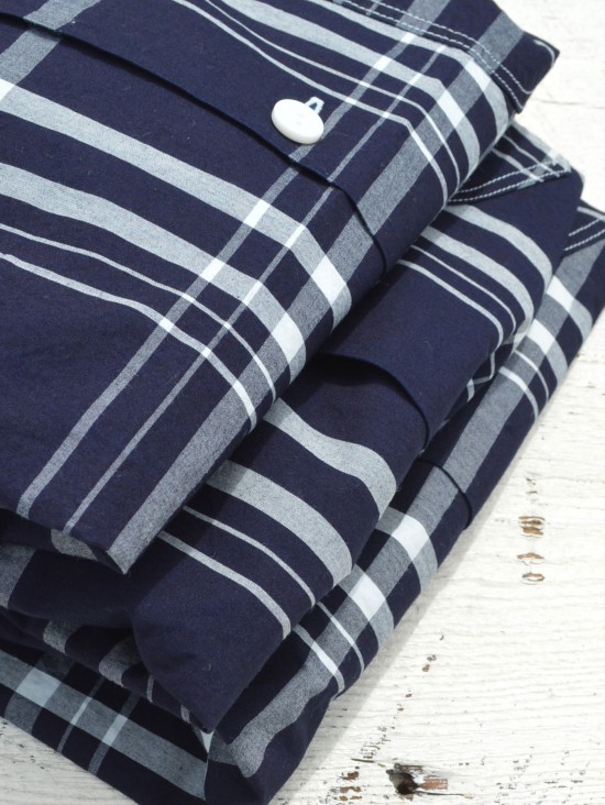 爽やかさの出るマルチチェックと一見無地のようにも見えるグレープレイドの2色展開。
