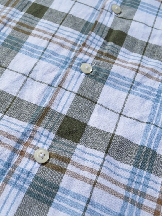 生地は、軽くてコシのある感じが特徴のリネンプレイド。