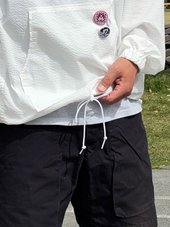 裾は調節可能で、絞ることで変化を楽しむことが出来ます。