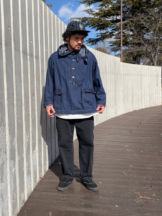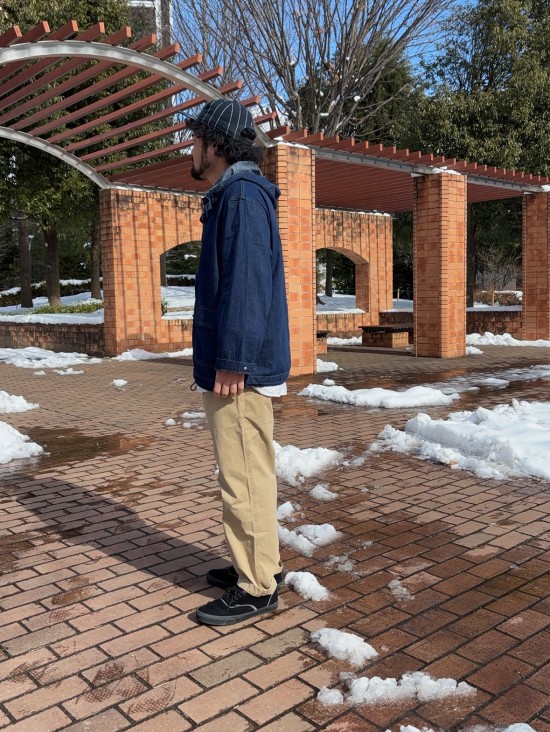 特に着丈が長めなので、やや大きめでゆったりと着れています。