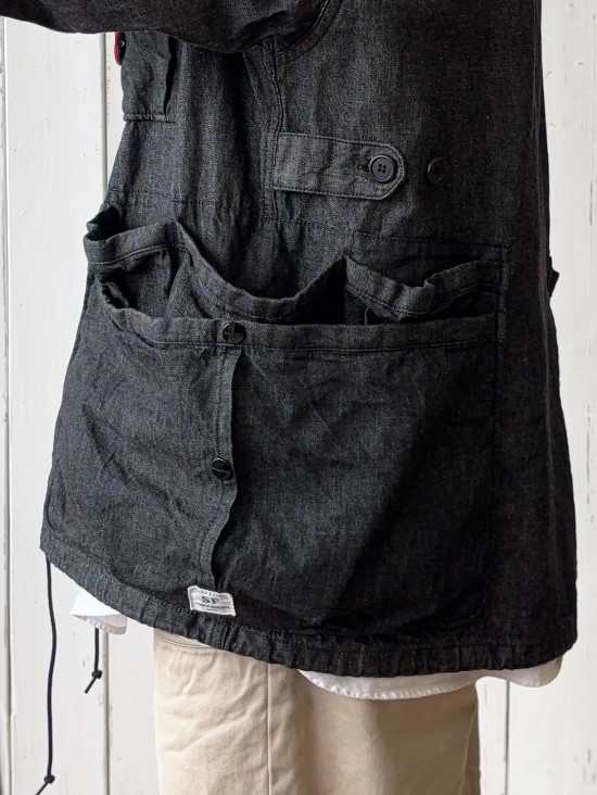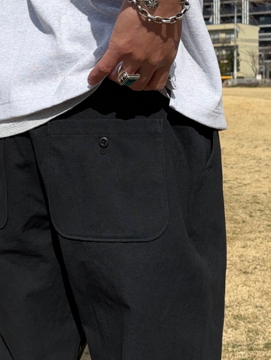 バンドカラーと左胸に付く台形ポケットが特徴で、バックヨークの両端にはギャザー、手作業による剣ボロなど1920年代頃の良質なワークシャツのディテールで構成され、ボタン使いや裾のマチ、裏糸の遊び心などポストらしさも健在です。