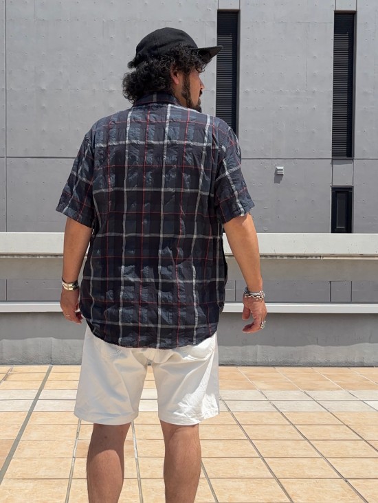 【POST O’ALLS】 No.6 Shirt S/S (Seersucker) “ネイビーチェック”