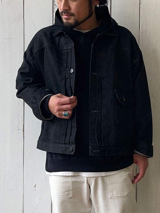 素材には、柔らかく着易い素材感のブラックデニム採用。