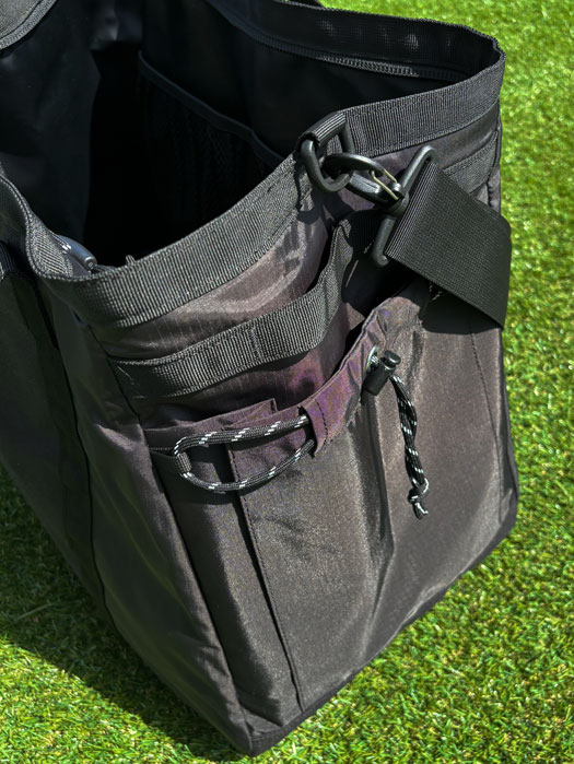 トートバックのように手持ちしたり、ショルダーストラップも付くので肩掛けも可能です。