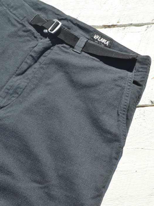 トラウザー型でありながら、右バックポケット下にツールポケットが付いたり、ウエストはウェビングベルトだったりとワークやアウトドアの要素がミックスされた面白さのある1本で、フロントポケット内部には隠しポケットが付くなど遊び心も効いてます。