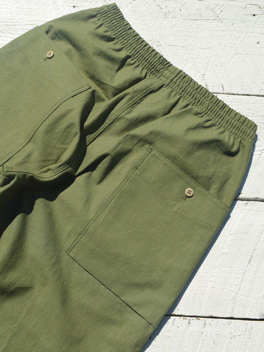 レングスもショート丈で、ウエストはゴムと紐で調整可能なリラックス仕様。