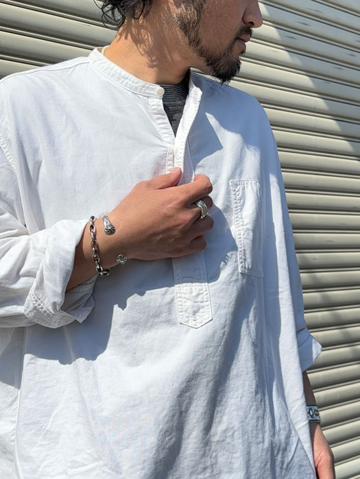 身幅が広く着丈もやや長めの武骨なサイズ感が心地よく、ポケット無しでシンプルに着て頂ける大人の1枚!!