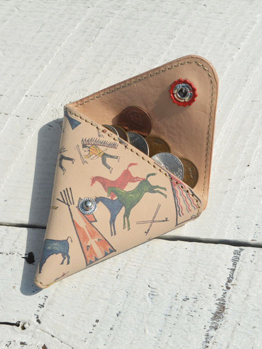 ネイティブアメリカンを先祖に持つアーティスト“イシ・グリンスキー”が描いた“TIPI ART”をインクジェット製法にてヌメ革に落とし込んだ抜群の雰囲気で、使い込むにつれて飴色に変わる経年変化も魅力の1つです!