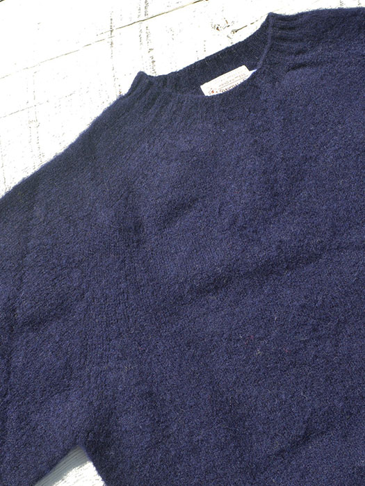 複雑なブレンディングの経験が必要なシェットランドは、英国国内での生産が年々減少しています。貴重な英国糸をスコットランドでジャガード機などの伝統的な機械により作り上げたのがこのニットです。