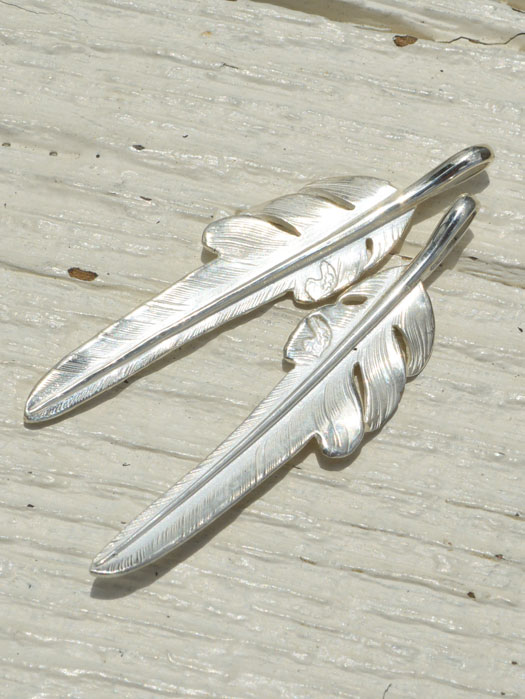 鳥の翼の一番羽である細長くて強い「風切羽(かぜきりばね)」をモチーフにしたフェザーで、ラリースミスのアイコンとも言えるアイテムです。