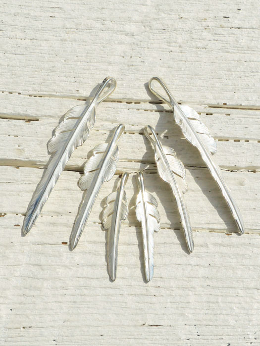 鳥の翼の一番羽である細長くて強い「風切羽(かぜきりばね)」をモチーフにしたフェザーで、ラリースミスのアイコンとも言えるアイテムです。