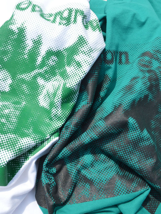 グリーンにはブラック、ホワイトにはグリーンのプリント。
